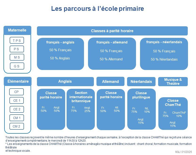 L’accès à la classe à parité horaire est soumis à une évaluation du niveau d’anglais et de français. Le nombre de place est limité.