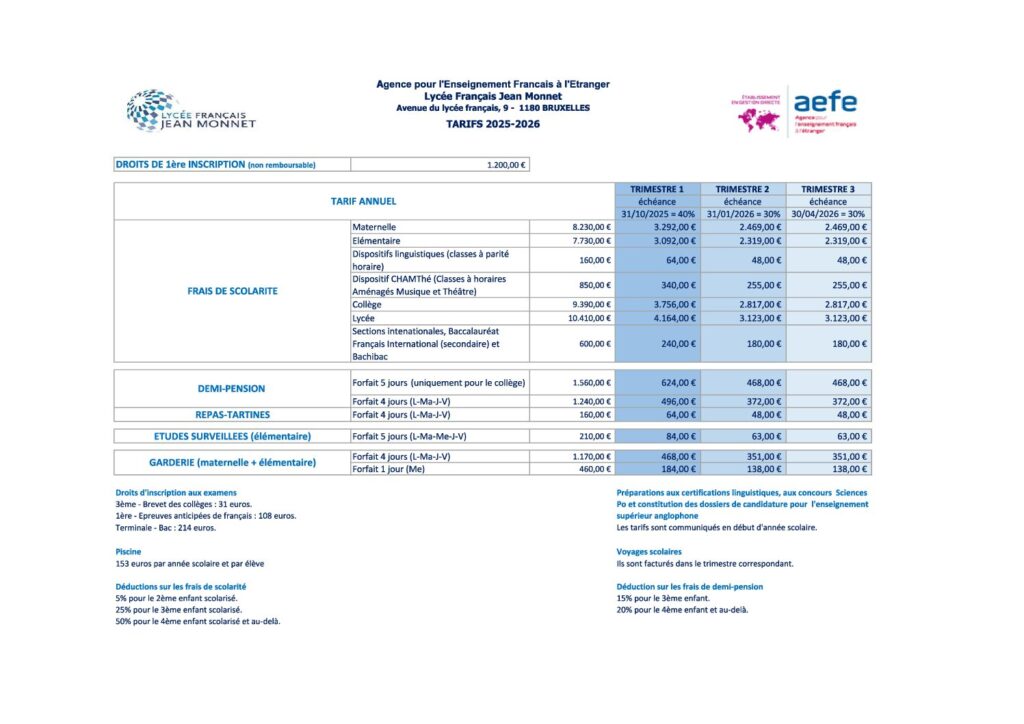 La première inscription et la scolarité des élèves sont soumises au paiement de frais.